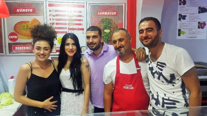 Bodrum’un Bitez Mahallesi’nde bulunan Tatlıses çiğköfte salonunda tezgahın başına geçen Dilan Çıtak çiğköfteyi hem yedi hem yedirtti. Çiğköfte sıkan Çıtak, en sevdiği yemeklerden birinin çiğköfte olduğunu söyledi. Bir yandan gazetecilerin sorularını yanıtlayan ünlü sanatçı bir yandan da çiğköfte yemeyi ihmal etmedi. Nişanlısı şarkıcı Levent Dörter’le birlikte arkadaşı Orkan Çömlekçi’yi ziyarete geldiğini söyleyen Çıtak, acılı çiğköfteyi görünce dayanamayarak yemeye başladı.