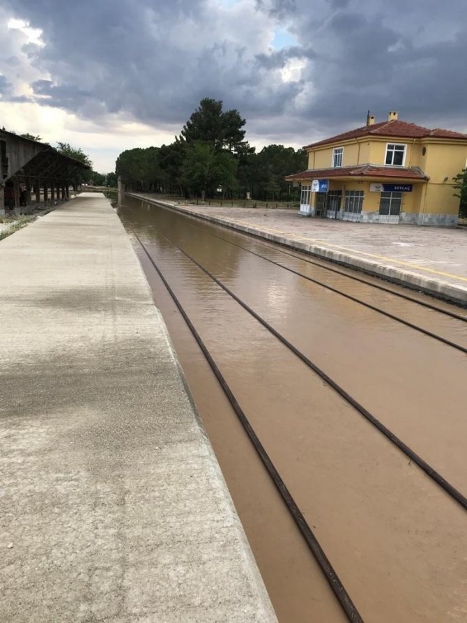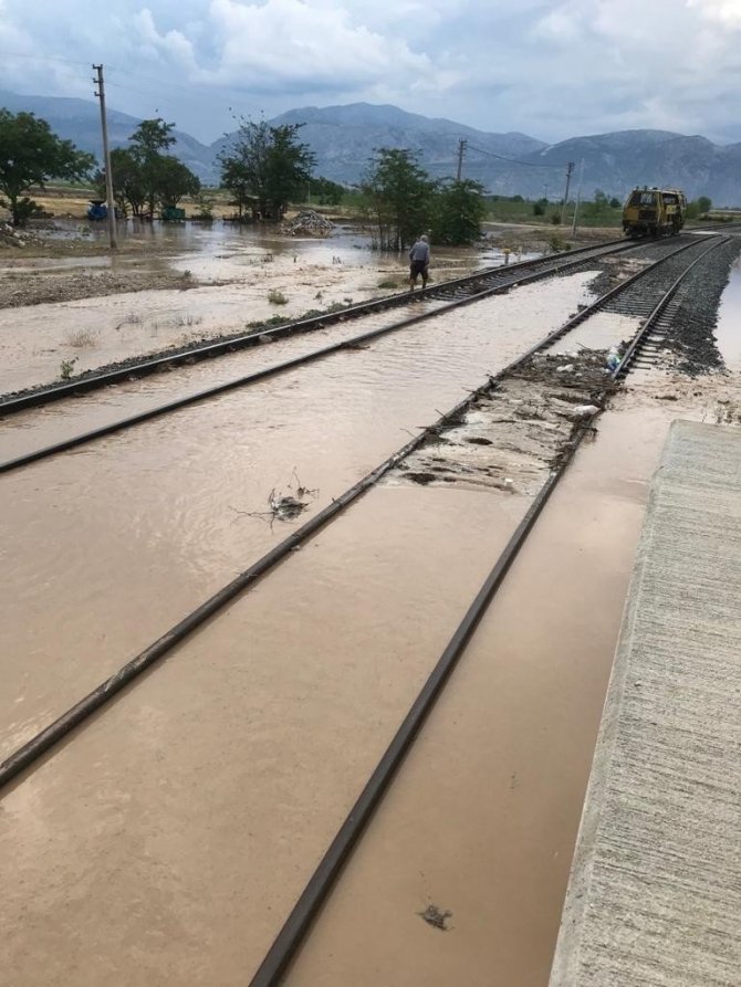 Dinar’da aşırı yağış hemzemin geçitleri ve demiryolunu sular altında bıraktı