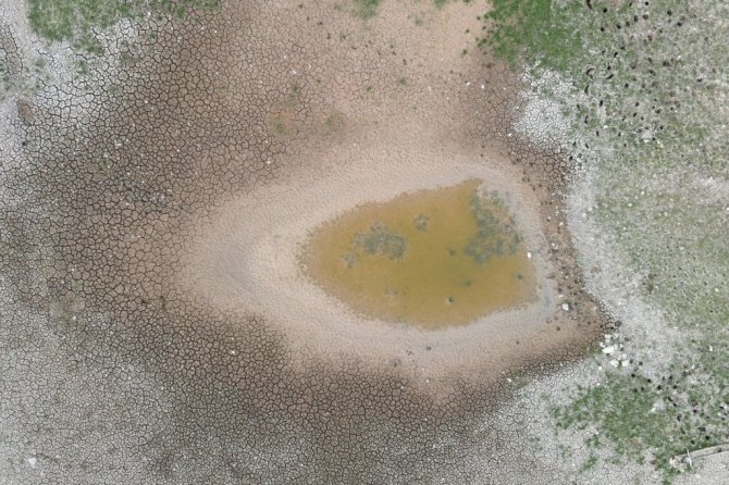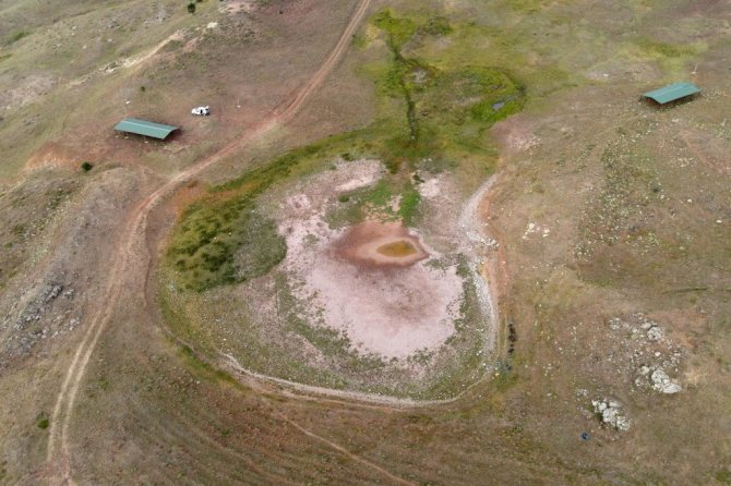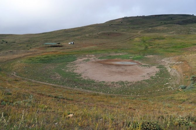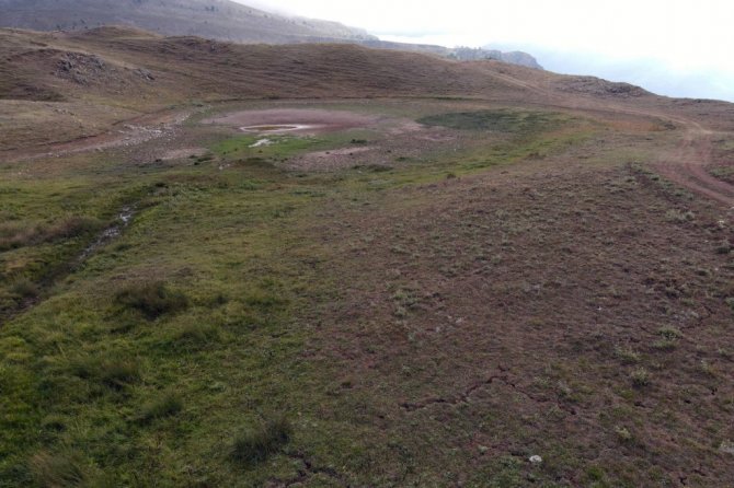 Denizden 2 bin 200 metrede bulunan ve yıllardır bahar aylarından sonbahar aylarına kadar buraya göç ederek yavrularını büyüyen angut kuşlarına ev sahipliği yapan Dipsiz Gölde su olmaması nedeniyle bu yıl o manzara da yaşanmadı.