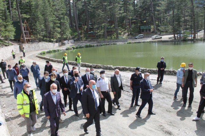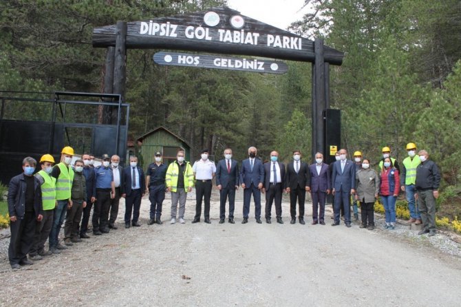 Vali Avni Çakır'a Dipsizgöl Tabiat Parkı ziyaretinde Kaymakam Deniz Pişkin ve protokol üyeleri eşlik etti.