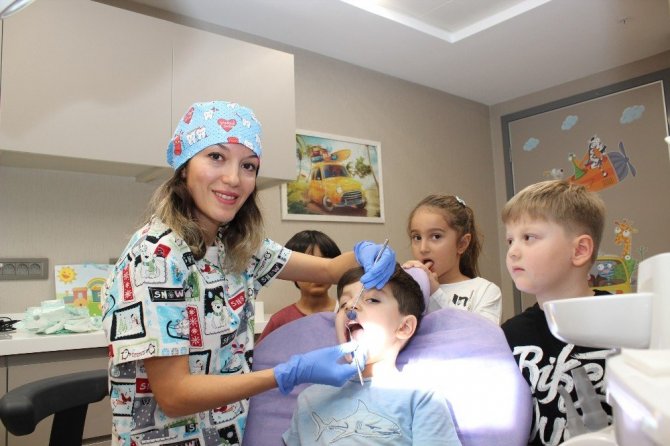 Dişlerini kontrol ettiği miniklere “cesaret belgesi” veren Kent Bayraklı Tıp Merkezi Çocuk Diş Hekimi Uzmanı Dr. Bengi Aydınel, şöyle konuştu: “Sadece çocuklarda değil pek çok yetişkinde de diş hekimi korkusu var. Çocuklukta böyle bir korkunun gelişmemesi için miniklerin 1 yaş sonrası mutlaka bir diş hekimiyle tanışması ve yılda iki kez ağız-diş kontrolünden geçmesi gerekli. Çocuğun diş hekimi korkusu olmazsa ihtiyaç duyulduğunda muayene ve tedavi sorunsuz yapılır. Aksi takdirde genel anestezi gerekebilir. Bugün konuk ettiğimiz çocuklarımız da muayene koltuğuna oturduklarında kaygı duymadan, keyifli bir şekilde muayenelerini yaptırarak motive oldular.”