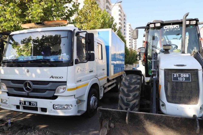 Diyarbakır Su ve Kanalizasyon İdaresi (DİSKİ) Genel Müdürlüğü, Bağcılar Mahallesinde bulunan 15 bin metreküplük depoya içme suyu sağlayan 1000'lik boruda oluşan arızaya müdahale etti.