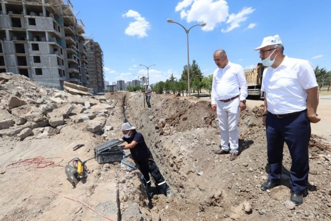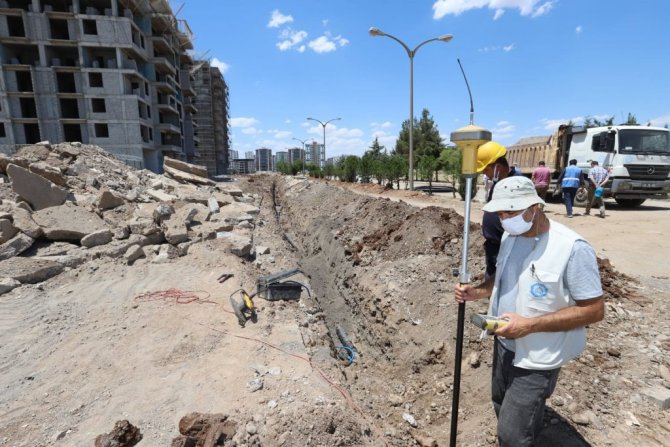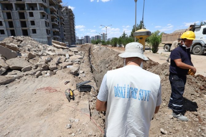 Diyarbakır Büyükşehir Belediyesi Su ve Kanalizasyon İdaresi (DİSKİ) Genel Müdürlüğü, yeni yapılaşmanın olduğu mahallelere içme suyu şebekleri döşüyor.