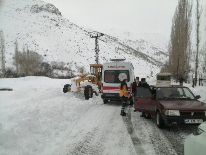 Malatya'da diyaliz hastası bir şahıs rahatsızlanınca hastaneye götürülmek istendi. Ancak kar nedeniyle yolun kapalı olmasından ambulans köye ulaşamadı. Karlı yol açılıp, şahıs hastaneye yetiştirildi.
