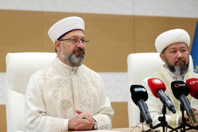 Geçilen zor zamanlarda Müslümanların karşı karşıya olduğu sorunlar için iş birliği imkanlarını ele almak amacıyla bir araya gelindiğini ifade eden Erbaş, "Bundan bir hafta önce Kazakistan Cumhuriyeti'nin 30. bağımsızlık yılı dolayısıyla gayet istifade ettiğimiz bir program gerçekleşti. Bu vesileyle Dini İdare Başkanı'nı ve heyetini bu anlamlı program için tekrar tebrik ediyorum. Kazakistan'da yaşayan soydaşlarımız ve dindaşlarımız bizler için çok kıymetlidir. Her zaman yanlarında olduğumuzu bir kez de burada ifade etmek istiyorum. Zor zamanlardan geçiyoruz. En kutsal değerlerimize dil uzatılıyor. Barış dini olan İslam, terörizm ve aşırıcılık ile bir tutulmaya çalışılıyor. İslam dünyası bu saldırılar karşısında maalesef birlik gösteremiyor. İslam dünyasını ilgilendiren temel konularda samimi bir çaba içerisinde olan Türkiye'ye karşı takınılan bazı hasmane tutumlar da ortadadır. Gelinen bu noktada DEAŞ, FETÖ ve benzeri terör örgütlerine, radikal akımlara karşı dikkatli olmak zorundayız. Bölgemiz gerçekleriyle ve İslam anlayışımızla uyumlu olmayan bu örgütlerin ve radikal akımların Kazakistan'da az da olsa zemin bulmasına ne Kazakistan'da ne de Türkiye'de müsaade etmemeliyiz. Sizlere ve bölge müftülerimize bu konuda büyük bir sorumluluk düşüyor" diye konuştu.