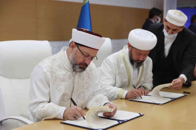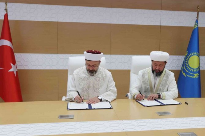 Diyanet İşleri Başkanlığı ile Kazakistan Müslümanları Dini İdaresi arasında mutabakat zaptı imzalandı. İmzalanan anlaşma gereği var olan iş birliğinin artırılması ve geliştirilmesini amaçlayan adımların atılması kararlaştırıldı. İki kurum arasında gerçekleşen protokol, Diyanet İşleri Başkanı Erbaş ve Kazakistan Müslümanları Dini İdaresi Başkanı Başmüftü Nauryzbay Taganuly Otpenov tarafından imzalandı. Anlaşmanın imza töreni öncesi bir konuşma yapan Diyanet İşleri Başkanı Ali Erbaş, "Ata yurdumuz, dost ve kardeş ülkemiz Kazakistan'ın bizim gönüllerimizdeki değeri gerçekten çok büyüktür. Başkanlığımız ile Kazakistan Müslümanları Dini İdaresi Başkanlığı arasında öteden beri var olan dostane ilişki ve iş birliği sebebiyle çok memnun olduğumuzu ifade etmek isterim. Önümüzdeki dönemlerde de bu birlikteliğin artarak devam etmesini Yüce Rabbim'den niyaz ediyorum" dedi.