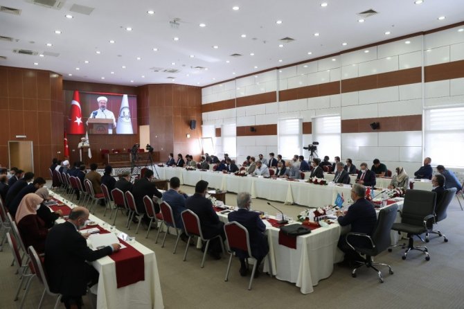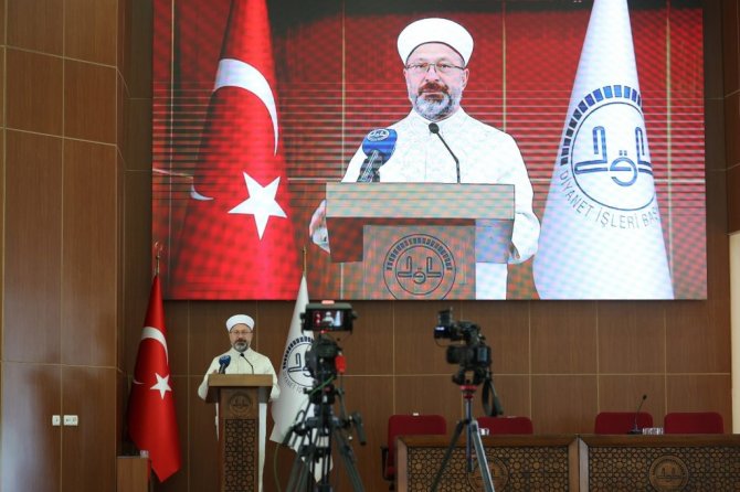 Başkan Erbaş, insanlığın, değerler açısından derin savrulmalar yaşadığına dikkat çekerek şunları söyledi "Bir değerler yozlaşması ve medeniyet krizi yaşanıyor. Modern dünyanın bilişim araçları sınır tanımadan tüm coğrafyalara yeni bir kültür endüstrisi, yeni imajlar, düşünceler, tutumlar, yeni davranış biçimleri ve alışkanlıklar pazarlıyor. Maruz kalınan bu meydan okumanın travmatik tezahürleri, İslam dünyasında da değişik şekillerde kendini gösteriyor" şeklinde konuştu.