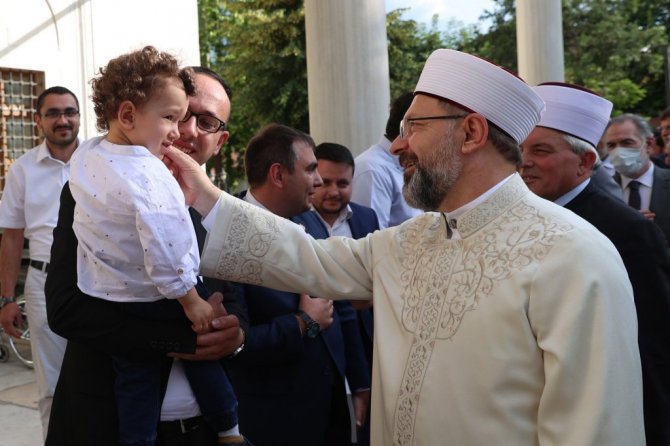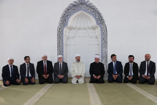 Hazreti Muhammed'in "Kim dünyada bir mescit inşa ederse, Allah onun benzerini ahirette bir makam olarak ona nasip eyler" şeklindeki müjdesini hatırlatan Başkan Erbaş, "İşte bu müjde doğrultusunda camilerimizi daha da geliştirmek, sayılarını daha da artırmak ve içini mamur etmek, içini mektep ve medrese haline getirmeye çalışmak bizim en önemli vazifelerimizden biridir" şeklinde konuştu.