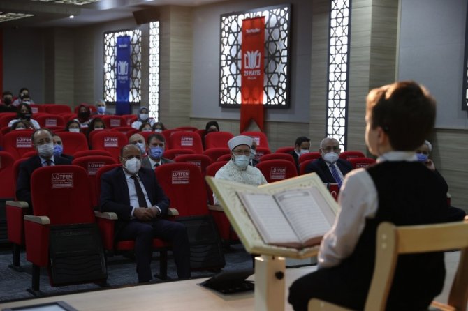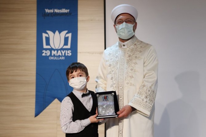 Başkan Erbaş, konuşmasının ardından ulusal ve uluslararası yarışmalarda dereceye giren öğrencilerden "Üstün Başarılı Hafız Öğrenci Muhammed Emin Karaca'ya, "Caribou Matematik Yarışmasında Dünya Birincisi olan Mert Yurtseven'e, "STEM Olimpiyatları'nda Matematik Kategorisinde Türkiye Şampiyonu olan Beyza Nur Karataş'a, "Uluslararası Gelecek Problemleri Çözme Programı'nda Geleceğe Dair Senaryo Çalışması ile SCW Kategorisinde yarışan ve FPS Türkiye ikincisi olan Gülşah Kılıç'a, "Uluslararası Gelecek Problemleri Çözme Programı'nda CmPS Kategorisi Junior seviyesinde haziran ayında dünya finallerine katılacak olan FPS Türkiye Şampiyonu Screen Friend Takımı'na plaket ve hediye takdim etti.