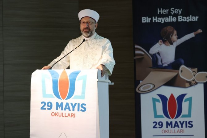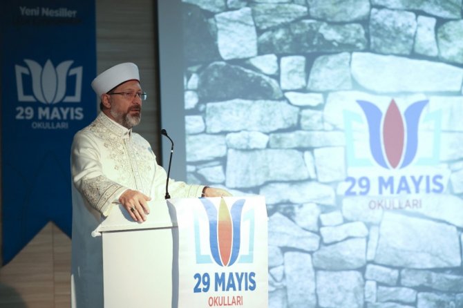 Başkan Erbaş, millete ve ülkeye faydalı öğrenciler yetiştirme noktasında anaokulundan üniversiteye kadar her yaş grubunda ve birçok alanda eğitim veren 29 Mayıs Okulları'nın yanında olduklarını söyledi. Medeniyetimizin temelinin ilme dayandığını, ilk inen ayetin "Oku" olduğunu hatırlatan Başkan Erbaş, şu ifadeleri kullandı: