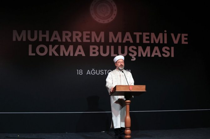 Hicri 61 yılında Hazreti Hüseyin ve beraberindeki 72 müminin, Kerbela'da hunharca şehit edildiğini belirten Başkan Erbaş, "Bu elim hadise, Allah'a ve O'nun kutlu elçisine iman eden bütün müminlerin kalbinde derin yaralar açmış, İslam dünyasını yasa ve gözyaşına boğmuştur. Alvarlı Muhammed Lufi Efendinin ifadesiyle; "Sahrâ-yı Kerbelâ kan gülistânı/Bozuldu risâlet bâğ u bostânı/ Ehl-i beyt'in soldu bahâristânı/ Ahmed ağlar, Mahmûd ağlar, Hızır ağlar" ifadelerini kullandı.