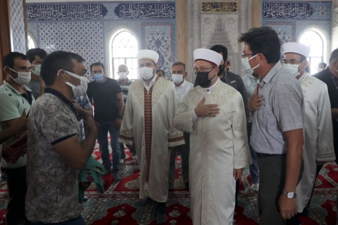Son günlerde yaşanan afetlerin herkesi derinden üzdüğünü söyleyen Erbaş, "Bir yandan sel felaketlerinin açtığı yaraları sarmaya çalışırken diğer yandan ciğerlerimizi dağlayan orman yangınlarıyla mücadele ediyoruz. Böylesi zor zamanlarda bizlere düşen, milletçe birlik ve beraberlik içerisinde, daha sıkı bir şekilde kenetlenmek, afetlerle hep beraber mücadele etmek ve yaralarımızı el birliğiyle sarmaktır. Nitekim Rabbimiz bizi kenetlenmeye, birliğe, beraberliğe davet etmekte, şu ayet-i kerimesiyle bunu bize emretmektedir; "Hepiniz toptan Allah'ın ipine sımsıkı sarılınız, tefrikaya düşmeyiniz, ayrılıp bölünmeyiniz, parçalanmayınız'" ifadelerini kullandı.