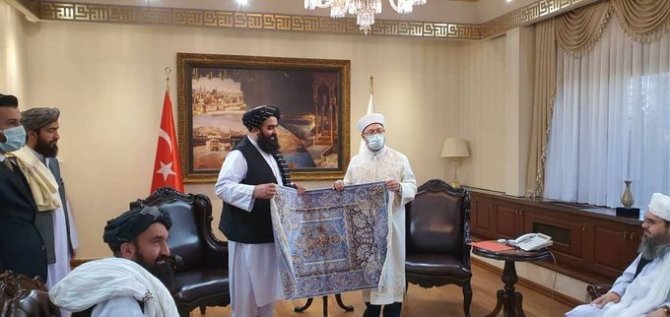 Diyanet İşleri Başkanı Prof. Dr. Erbaş, Ankara'da temaslarını sürdüren Afganistan Geçici Hükümeti Dışişleri Bakan Vekili Mawlawi Amir Khan Mutaqi başkanlığındaki heyeti makamında ağırladı. Mutaqi görüşmede, Türkiye ve Afganistan'ın tarihe dayalı ilişkilerinde yeni ve olumlu bir sayfa açacaklarını kaydetti.