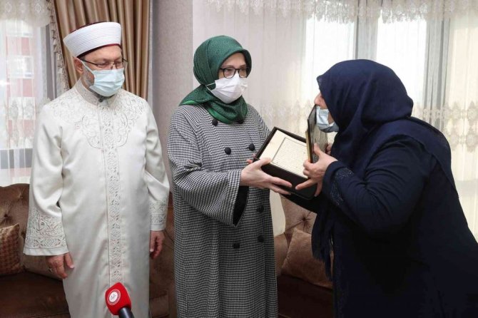Erbaş, ziyarette aileye Kur'an-ı Kerim hediye etti.