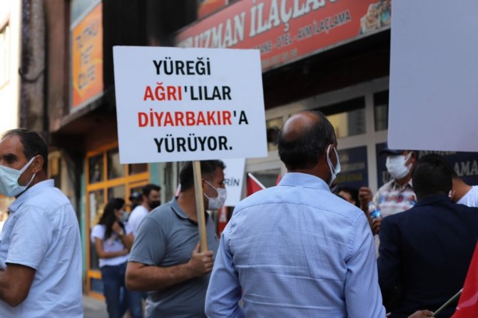 Çocuğu dağa kaçırılan Süleyman Aydın, çocuklarını alana kadar eylemlere devam edeceklerini söyleyerek, "Biz Diyarbakır anneleri olarak sonuna kadar annelerimizin yanındayız. Eylemin 716'ncı günü Muş'taki annelerimizle geçirdik. Bugün de Ağrı'ya annelerimize geldik. Görüyorsunuz HDP bir kez daha kirli yüzünü ortaya çıkarıyor. Burada bize PKK marşı çaldırıp PKK işareti yapıyorlar. Bunlarda hiç vicdan yok. 9 yaşındaki çocukları dağa götürüyorlar ve utanmadan bize sözde PKK marşı açıyorlar. Bunlar suçlarını kabul ediyorlar. Annelere bir açıklama yapamıyorlar. Anneler evlatlarını istiyor, HDP bundan rahatsızlık duyuyor. Artık çocukları dağa götüremiyorlar çünkü biz eylem yapıyoruz. HDP milletvekilleri hiçbir zaman kendi Kürt halkına vekillik yapmamışlardır. Hep Kandil'e vekillik yapıyorlar, kendi iradeleriyle konuşamıyorlar. HDP ve PKK bilsin ki bizim çocuklarımızı dağa götürdükleri gün biz öldük, hiçbir korkumuz yoktur. HDP'den korkan HDP gibi olsun" dedi.