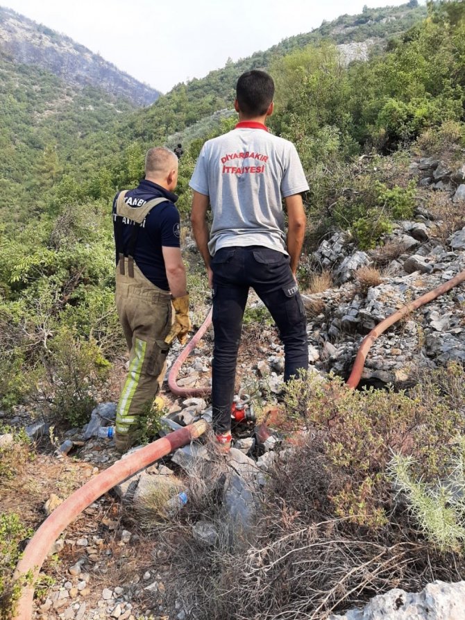 Diyarbakır Büyükşehir Belediyesi, Antalya'nın Alanya ilçesinde devam eden orman yangınına müdahale çalışmalarını sürdürüyor.
