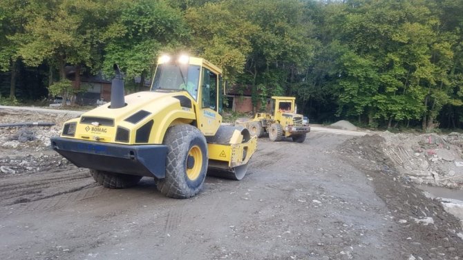 Diyarbakır Büyükşehir Belediyesi, Sinop'un Türkeli ilçesinde sel nedeniyle kullanılmayacak duruma gelen yol ve köprüleri onarıyor.