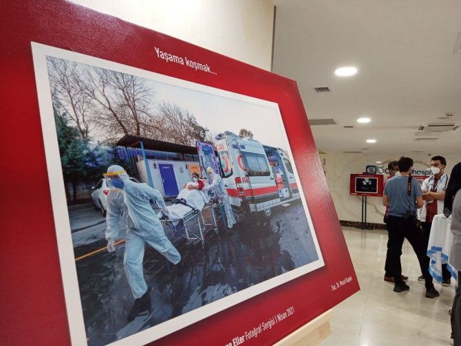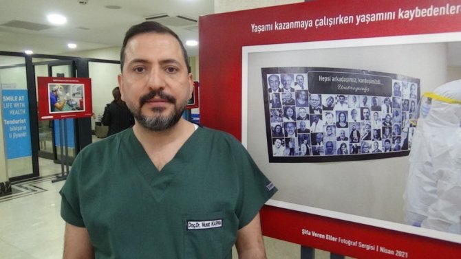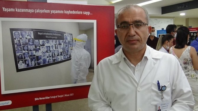 Sergiyle insanlara bir takım mesajlar vermeyi arzu ettiklerini belirten Doç. Dr. Murat Kapan ise, "Bir sağlık çalışanları olarak insanların her alanında onların hayatlarına dokunan bir mesleğin mensuplarıyız. Bu süreçte özellikle pandemi ile birlikte biraz daha farkındalığın arttığı, sağlık çalışanlarının öneminin daha fazla anlaşıldığı bir dönemde geçiyoruz. Biz de bu dönemde özellikle sağlık çalışanlarının gündelik hayatlarında var oldukları ve onların hayatlarının parçaları olan anlara tanıklık edebilmek adına böyle bir projeyi geliştirerek içinde olmayı amaç edindik. Bu süreçte şu anda 24 adet fotoğraf sergileme imkanı bulduk. Bu süreçte özellikle çalışanlarımızın motivasyonun artırılmasını hedefliyoruz. Bir yandan da fotoğraflar aracılığıyla ziyaret eden insanlara birtakım mesajlar vermeyi arzu ediyoruz. Burada özellikle şu anda önünde bulunduğumuz tablo pandemi sürecinde kaybettiğimiz 435 meslek arkadaşımızın resimlerinin bulunduğu bir tablodur. Bu nedenle onları saygı ile anıyoruz" dedi.