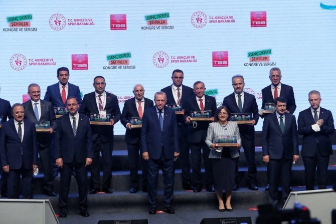 Cumhurbaşkanı Recep Tayyip Erdoğan, "Genç Dostu Şehirler Fikir ve Proje Yarışması'nda destek almaya hak kazanan Diyarbakır Büyükşehir Belediyesinin ödülünü...