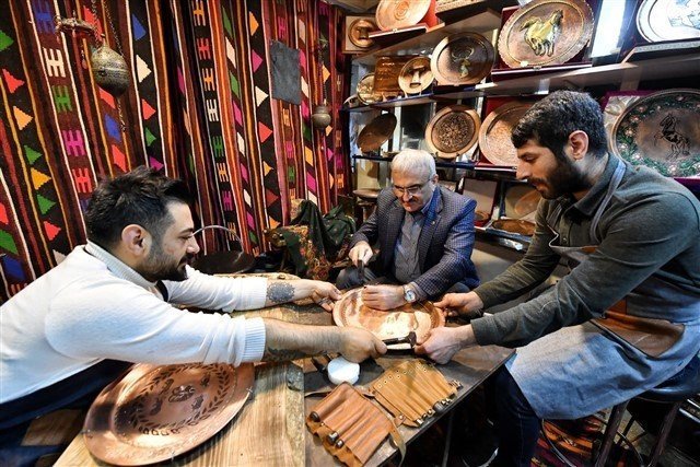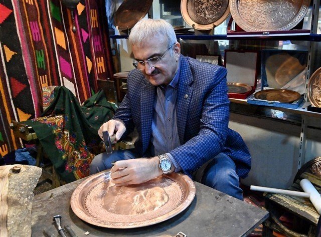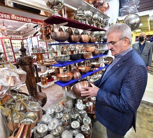 İncelemeler öncesinde tarihi Bakırcılar Çarşısı'nı ziyaret eden Vali Karaloğlu çarşı esnafına kolaylıklar dileyerek, "İnsanlığın ana vatanında bakırı yaşatmaya devam eden tüm ustalarımıza teşekkür ediyorum. Elinize, emeğinize sağlık" dedi.