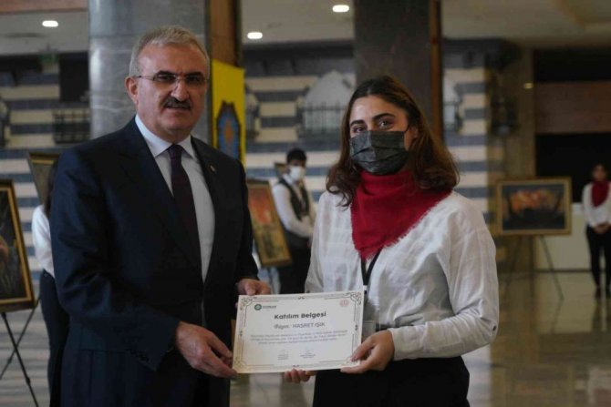 Diyarbakır Valisi Münir Karaloğlu, Büyükşehir Belediyesi'nin liseli gençlerin İstiklal Marşı'nın on kıtasını resmettiği serginin açılışını gerçekleştirdi.