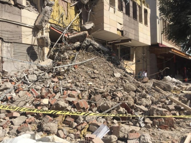 Diyarbakır'da depreme dayanıksız olan ve yıkım kararı verilen 50 yıllık Çarşı Karakolu binası güvenlik önlemleri altında yıkıldı.