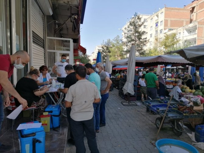 Özellikle vatandaşların yoğunla kullandığı semt pazarları, kıraathane, çay bahçesi ve AVM'lerde ekipler, vatandaşları ikna ederek günlük 40 binin üzerinde kişinin aşı olmasını sağlarken, İl Sağlık Müdürü Dr. Cihan Tekin, aşı uygulama noktalarında vatandaşları ikna eden ve aşılarını yapan ekipleri ziyaret etti.