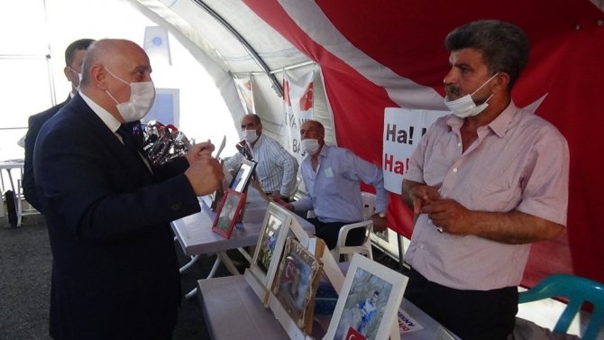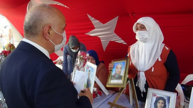 Çocukları terör örgütü PKK mensupları tarafından dağa kaçılan ve HDP Diyarbakır il binası önünde oturma eylemi başlatan ailelere bir destek ziyareti de Şehit Aileleri Yardımlaşma Sosyal Kültürel ve Dayanışma Derneğinden geldi.
