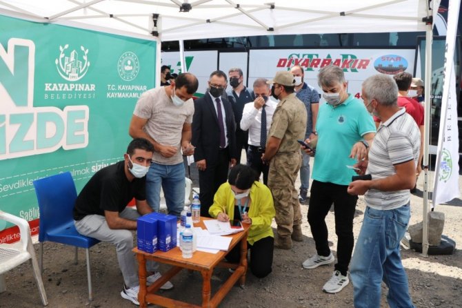 İl Sağlık Müdürü Cihan Tekin ve Kayapınar İlçe Kaymakamı ve Belediye Başkan Vekili Ünal Koç, Pirinçlik Jandarma Karakol Komutanlığı önündeki aşı standını ziyaret ederek, özellikle otobüs ile şehirlerarası yolculuk yapan vatandaşlara aşılarını yaptırmalarını tavsiye etti.