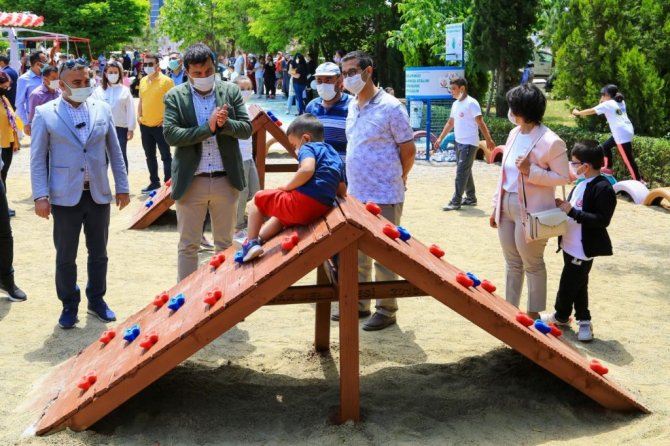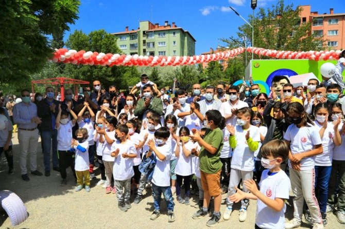 Uşak Belediyesi tarafından geri dönüştürülebilir malzemelerden yapılan ve birbirinden renkli oyun gruplarının yer aldığı özel park, düzenlenen törenle...