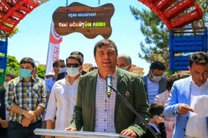 Çakın, "Çocuklarımızın hizmetine böyle bir park sunmaktan dolayı büyük mutluluk duyuyoruz. Geri dönüşüm bugün tüm dünyada olduğu gibi ülkemizde de önemi bilinen ve uygulanan bir işlem. Güzel Uşak'ımız da geri dönüşüm konusunda oldukça iyi bir seviyede. Biz Uşak Belediyesi olarak kendi bünyemizde de bu işe çok önem veriyoruz. Geri dönüştürülebilir her türlü malzemenin doğamızı ve çevremizi korumak, gelecek nesillerimize daha sağlıklı bir toprak ve su bırakabilmek adına kullanılması gerekir. Biz bu anlayışla çalışıyoruz. Bugün burada da bu anlayışımızın güzel bir örneğini görüyorsunuz. Ekiplerimizin geri dönüştürülebilir olan ve hurdaya ayrılan parçaları kullanılabilir hale getirmesi için çalışmamızı başlattık ve onlar da harika bir el işçiliğiyle özveriyle çalışarak kısa süre içerisinde bu muhteşem oyun gruplarını ortaya koydular. Burada aklınıza gelebilecek bir sürü farklı materyal var. Örneğin kullanılmayan eski variller, meyve kasaları, lastikler ve çeşitli demir parçalar gibi. Tüm bunların dönüştüğü bu renkli ve göz alıcı oyuncaklara bakıldığında inşallah çocuklarımızın büyük bir keyifle bu parkta vakit geçireceğini düşünüyorum. Bu güzel eserleri ortaya koyan çalışma arkadaşlarıma da teşekkür ediyor ve ellerine sağlık diyorum" şeklinde konuştu.