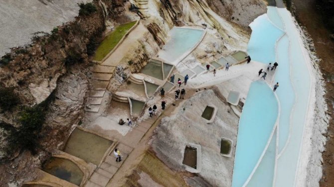 Ordu'dan ziyarete gelen Ertan Uzunçakmak, Göksu Travertenleri'nin görsel olarak çok güzel olduğunu ifade etti. Uzunçakmak, "Biz Ordu'dan geliyoruz. Buranın ününü duymuştuk. Zaten yol boyunca değişik mesire yerleri var. En tepede de burası var. Sodalı suyun akışı sayesinde oluşan bir doğal yapı anladığım kadarıyla. Görsel olarak çok güzel. Daha da güzel olacak