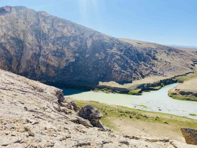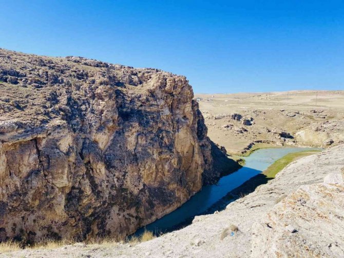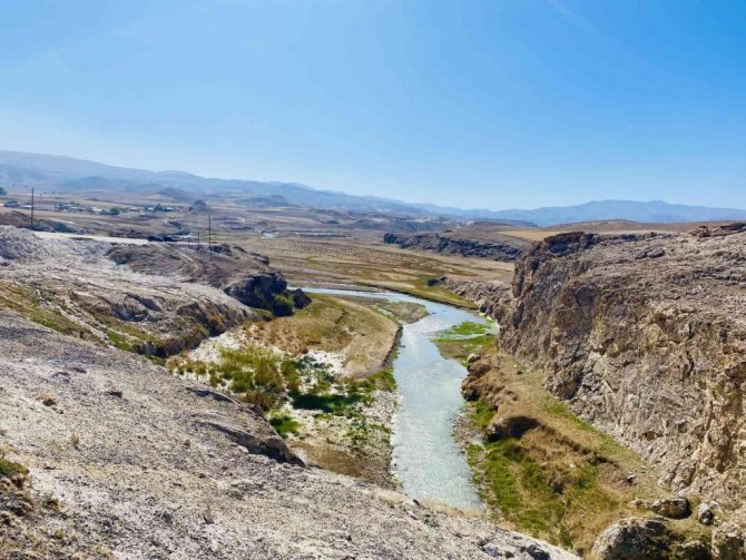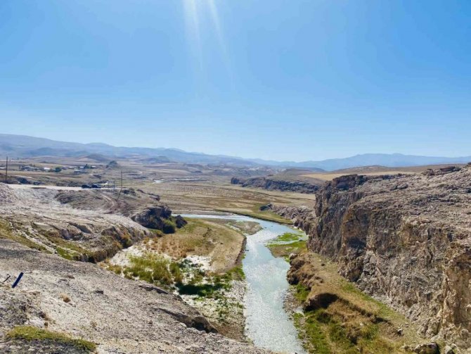 Ağrı'nın Diyadin ilçesinde doğal köprü olma özelliği ile tanınan Kudret Köprüsü manzarasıyla büyülüyor.