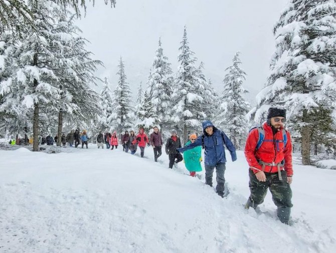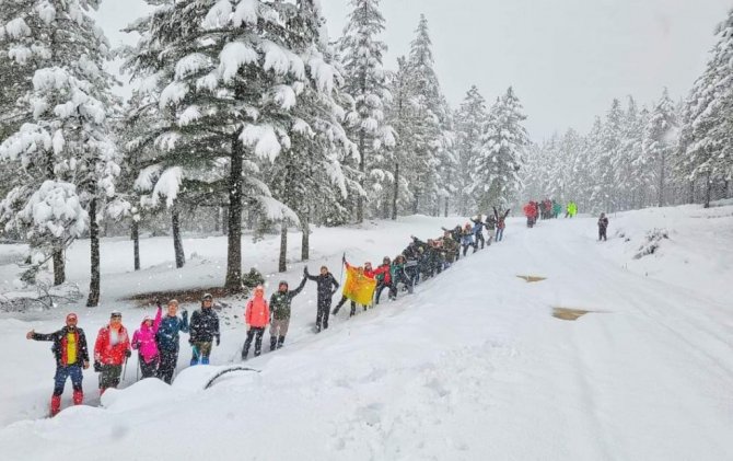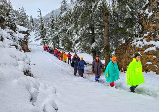 Adana'nın Pozantı ilçesine bağlı yüksek kesimlere yağan kar nedeniyle kar yürüyüşü düzenledi.
