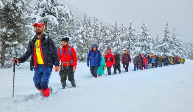 Kar yağışının ardından bembeyaz bir örtüyle kaplanan çam ağaçları kartpostallık görüntüler oluştururken, doğa spor kulüpleri de kar yağışını fırsata çevirerek yürüyüş düzenlediler. 1700 rakımlı Elmalı Boğazına 40 kişilik ekiple yürüyüş yapan Adana Xtreme Doğa Sporları Kulübü üyeleri kar üzerinde doyasıya eğlendi.