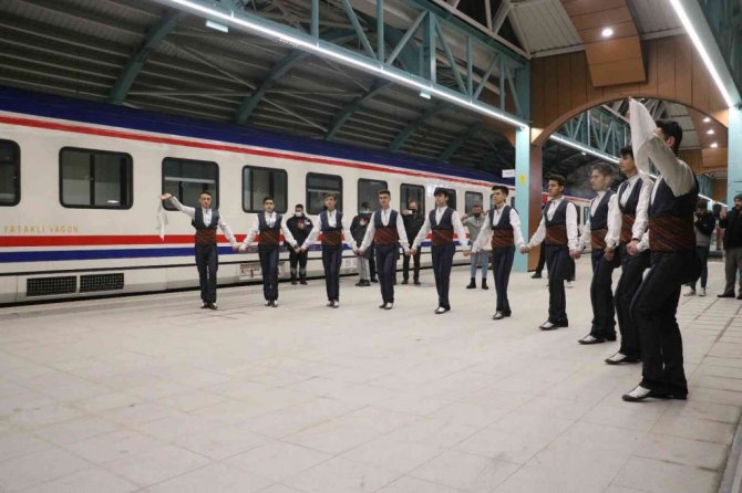 Kars'tan Ankara'ya dönen Doğu Ekspres'i Turizm turu Sivas garında sıcak bir törenle karşılandı.