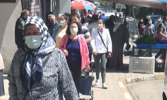 Ramazan Bayramı arifesinde Yeniyol Caddesi üzerinde kalabalık, market ve manavlarda ise kuyruk oluştu. Kısıtlamaya rağmen vatandaşlar, bayram öncesi ihtiyaçlarını karşılamak için alışverişe akın etti.