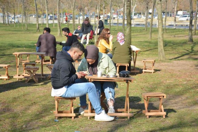 Açık havada kitap okumanın keyifli olduğunu söyleyen Ebru Duran, "Açık havada biraz kitap okuyarak vakit geçiriyorum. Yaşadığım bölgede daha fazla alanım ve zamanım var. Fakat burada daha çok hafta sonları yapabiliyorum. Bugün de şansıma çok güzel bir hava var" dedi.