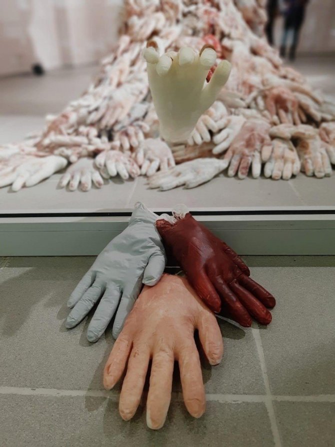 Paşa, “Bu çalışmamda ana rahminde erkek, kadın, hayvan demeden hepimiz eşitiz. Ancak doğumdan sonra bu ayrımcılığı yaratan tek şeyin algılar olduğunu vurgulamak istedim. Burada camın arkasında üç ana renk var sadece ama sonrasında bütün renkler karışık. Ben bu çalışmayla eşitliğe vurgu yaptım” dedi.