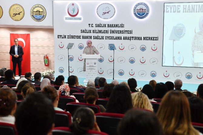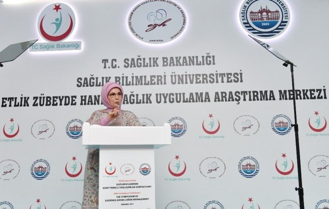 Sağlık Bilimleri Üniversitesi Ankara Etlik Zübeyde Hanım Sağlık Uygulama Araştırma Merkezi tarafından uluslararası katılımlı "Doğum Eyleminde Kanıt Temelli Yaklaşımlar Sempozyumu" düzenlendi. Etlik Zübeyde Hanım Kadın Hastalıkları Eğitim Araştırma Hastanesinde gerçekleştirilen sempozyumun açılış konuşmasını yapan Cumhurbaşkanı Erdoğan’ın eşi Emine Erdoğan, Suda Doğum Ünitesini hizmete açacak olmaktan büyük bir mutluluk duyduğunu belirterek, ilkini 2005 yılında Zekai Tahir Burak Hastanesinde açtıkları bu ünitelerin sayılarının artmasının kadınların sağlığı, yeni nesillerin geleceği adına son derece önemli olduğunu ifade etti. Konuşmasına Michel Odent’in medeniyet ile doğum ortamı ilişkisine atıf yaparak başlamak istediğini söyleyen Erdoğan, “Dünyanın en büyük mucizelerinden olan doğum hadisesi gerçekten uygarlıkla yakından ilişkili bir konudur. Fakat günümüz dünyasında kadınlar bu özel tecrübeyi en doğal haliyle yaşayamamaktadırlar maalesef. Öyle ki doğum tıbbi bir operasyona dönüşmüştür. Oysa gebelik ve doğum bir hastalık değil, bedenin doğal, normal ve sağlıklı bir fonksiyonudur. Gereksiz yapılan her müdahale hormon salınımını olumsuz etkiler. Zaten doğal doğumu üstün kılan bu hormonların salgılanmasıdır. Hiçbir ilaç ve müdahaleye maruz kalmayan bir anne bebeğini tüm doğal hormonların etkisi altında doğurarak, doğar doğmaz bebeğiyle güçlü bir bağ kurabilecektir. Hal böyleyken ne yazık ki ülkemizdeki sezaryen oranı yüzde 53’tür. Oysa muteber sağlık otoritelerinin makul bulduğu oran yalnızca yüzde 15’tir. Bu noktada anne adayı kadınlarımızı cesaretlendirmeli, kurumlarımızda normal doğumu teşvik eden sistemik bir dönüşüm başlatmalıyız. Bebek için en iyi sağlık güvencesi olan doğal doğum çocuklarımıza vereceğimiz en güzel armağandır. Külfetli gibi görünse de bu özel tecrübenin kazanımlarını onlardan esirgememeliyiz” şeklinde konuştu.