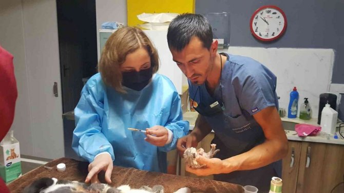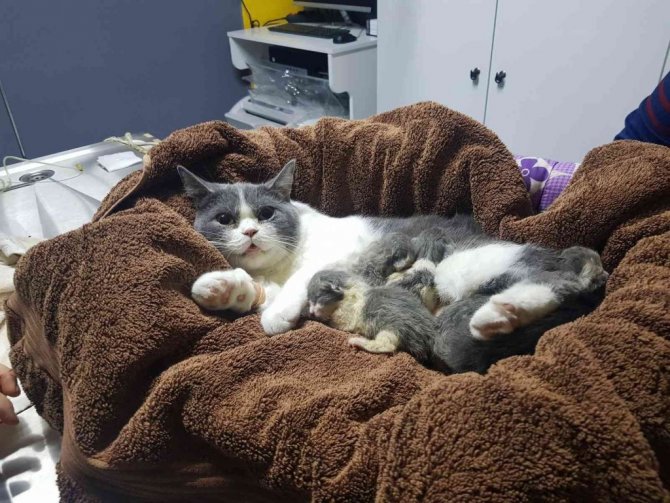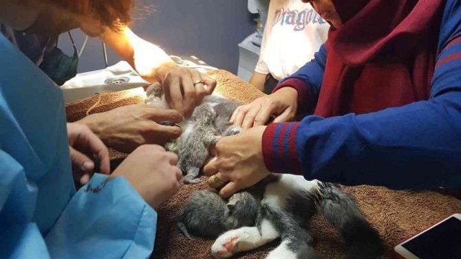 Cerrahi Bilim Uzmanı Veteriner Sıla Zilci, kedilerin doğum sürecinin 55. ve 65. günler arasında olduğunu belirterek, "Bu anne kedimiz gebeliğinin 65. günündeymiş ve hala doğuramamış. Kedi sahipleri, yavrulardan birinin doğum kanalına sıkıştığını fark etmiş. Acil sezaryene almamız gerekti. Tüm yavruları sezaryenle kurtardık. Hepsinin sağlık durumu gayet iyi" dedi.