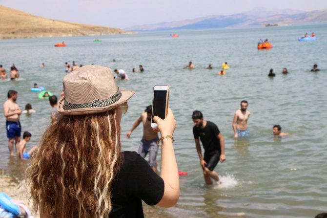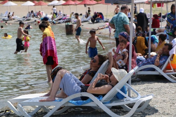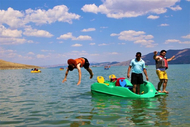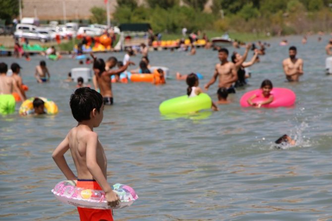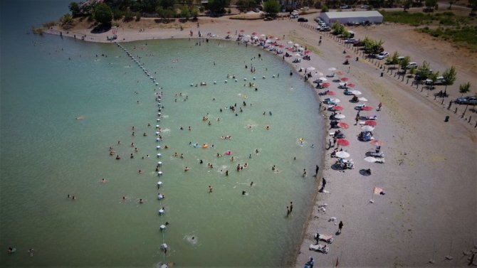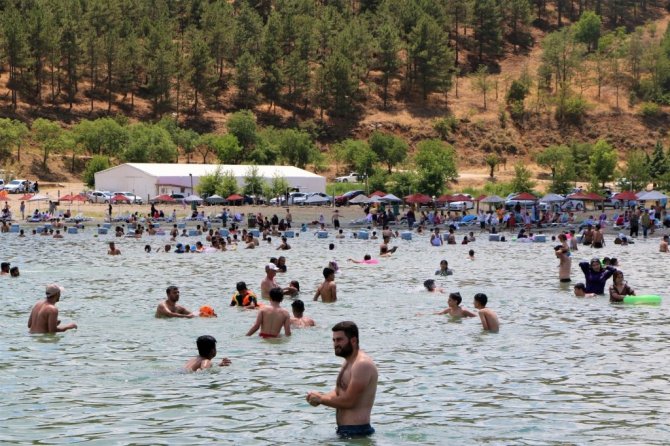 Arkadaşlarıyla birlikte Malatya'dan geldiklerini belirten tatilcilerden Ramazan Eser, "Yüzmeye geldik. Temiz ve güzel bir yer. Biraz da kalabalık bir yer. Hava çok sıcak. Malatya'da gölet var ama burası gibi değil. Burası biraz sahili andırıyor" şeklinde konuştu.