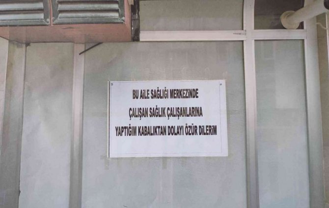 Şüpheli ve mağdur doktor, İnegöl adliyesindeki uzlaştırma bürosunda karşı karşıya geldi. Doktor, şüpheliden bir şartla şikayetçi olmayacağını söyledi. Doktorun, sağlık merkezi kapısına, "Bu aile sağlığı merkezinde çalışan sağlık çalışanlarına yaptığım kabalıktan dolayı özür dilerim" yazısını 1 hafta boyunca asmasını istedi. Şüpheli, şartı kabul etti. 1 metre uzunluğunda, 1 metre genişliğindeki beyaz kağıda ifadeleri yazan şüpheli, özür yazısını sağlık merkezinin kapısına astı. 1 hafta boyunca kapıda asılı olan yazıyı gören hastalar kısa süreli şaşkınlık yaşadılar. Yargılama sürecinin bir parçası olan uzlaştırma işlemleri sayesinde iki taraf da süreçten mutlu ayrıldı.