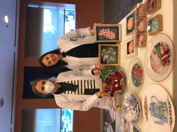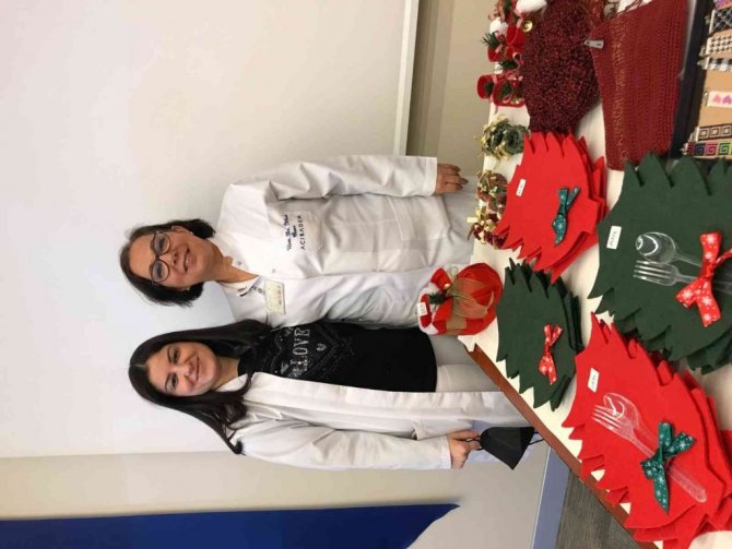 Dr. Tuğana Akbaş'ın mumları, Dr. Nazlı Özcan'ın quling ürünleri, Dr. İlkut Özer'in keçe ve örgü çantaları, Dr. Ayşegül Zümrütdal'ın takı tasarımı, Dr. Meltem Serin ve Dr. Leyla Şen'in seramik ürünleri, Dr. Hale Erbaş'ın ise dekopaj kağıdı ile boyama ve mozaik çalışmalarından oluşan ürünler dikkat çekti.