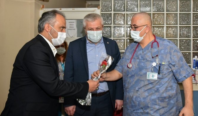 Bursa Büyükşehir Belediye Başkanı Alinur Aktaş, Çekirge Devlet Hastanesi'ni ziyaret ederek, doktorların 14 Mart Tıp Bayramı'nı kutladı.