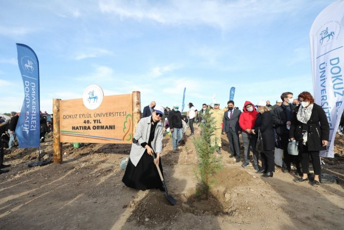 Dokuz Eylül Üniversitesi (DEÜ), Tınaztepe Yerleşkesinde 11 Kasım Milli Ağaçlandırma Günü kapsamında 40. Yıl Hatıra Ormanı oluşturdu. Her bir üniversite mensubu adına birer ağacın dikileceği hatıra ormanı ile "geleceğe nefes" olacaklarını söyleyen DEÜ Rektörü Prof. Dr. Nükhet Hotar, "İnanıyoruz ki bugün dikilen fidanlarımız geleceğimize nefes olacak; bir gün burada diktiğimiz ağaçların altında gölgelenenler bizler için "iyi ki yapmışlar" diyecekler" diye konuştu.