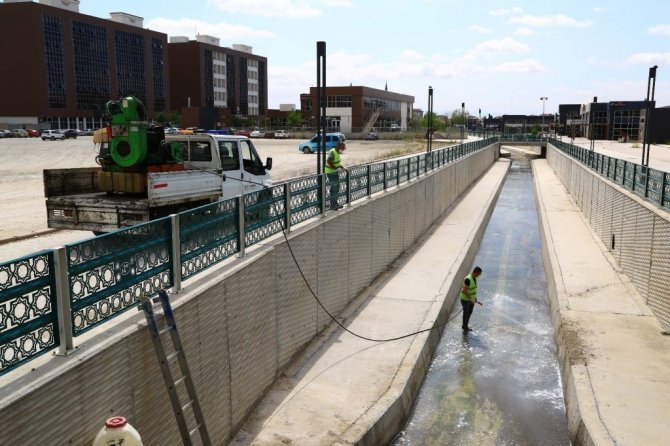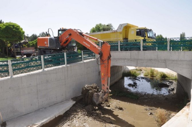 Uşak'ta kentin birçok yerinden geçen Dokuzsele Deresi, belediye ekipleri tarafından temizlendi.