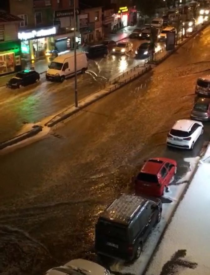 Sağanak yağışın etkisiyle göle dönen caddeler de araçlar ise güçlükle ilerledi.
