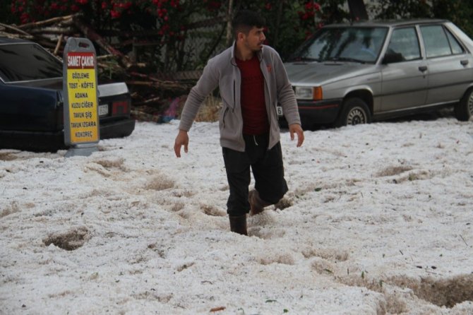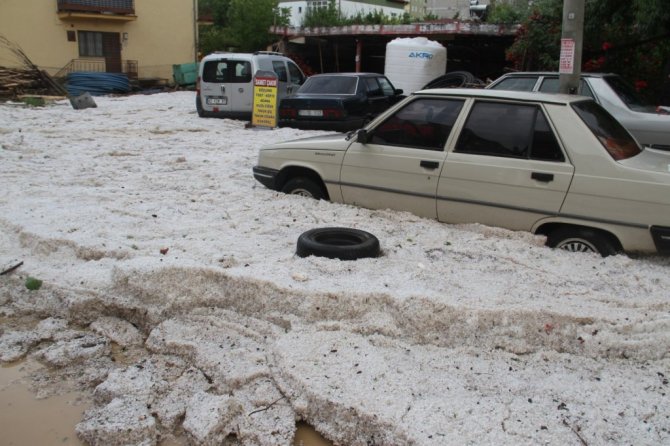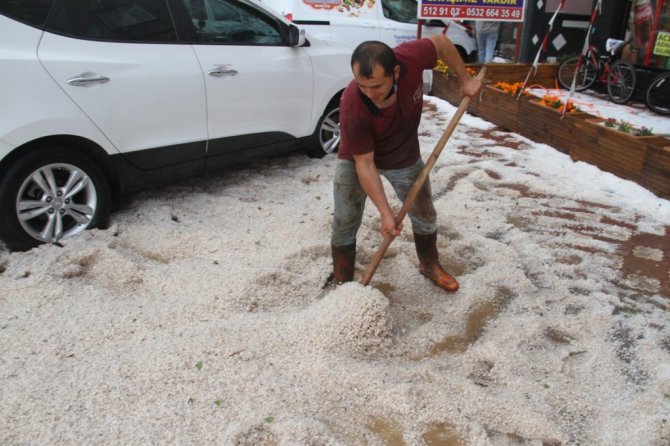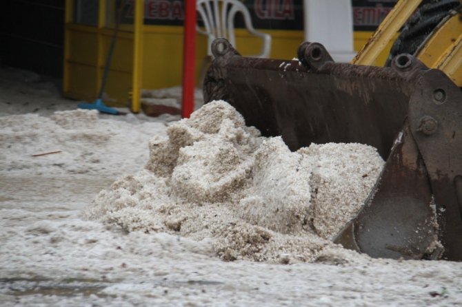 Dolu yağışıyla sokaklar beyaza büründü, dolu yığınları kamyonlarla taşındı