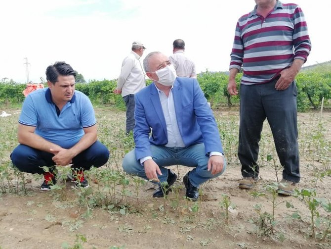 CHP Manisa Milletvekili Ahmet Vehbi Bakırlıoğlu aşırı yağış ve dolu nedeniyle tarım alanları zarar gören Gölmarmara’da incelemelerde bulunarak ürünleri zarar gören çiftçilerle görüştü.